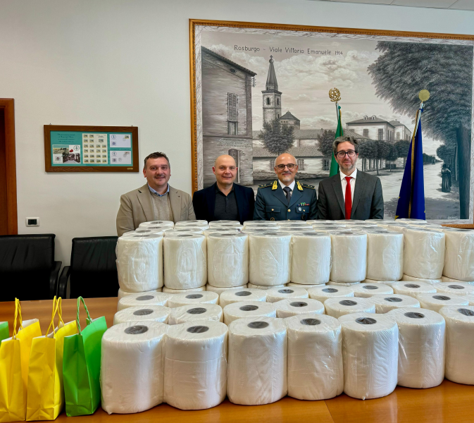 ROSETO DEGLI ABRUZZI – Un gesto concreto di solidarietà e vicinanza al territorio: la Tenenza della Guardia di Finanza di Roseto degli Abruzzi ha donato ieri rotoli di carta assorbente ai Comuni di Roseto, Pineto e Silvi. Il materiale, proveniente da un sequestro, è stato ufficialmente consegnato ai rappresentanti delle tre amministrazioni comunali durante una breve cerimonia nella Sala Giunta del Municipio di Roseto.