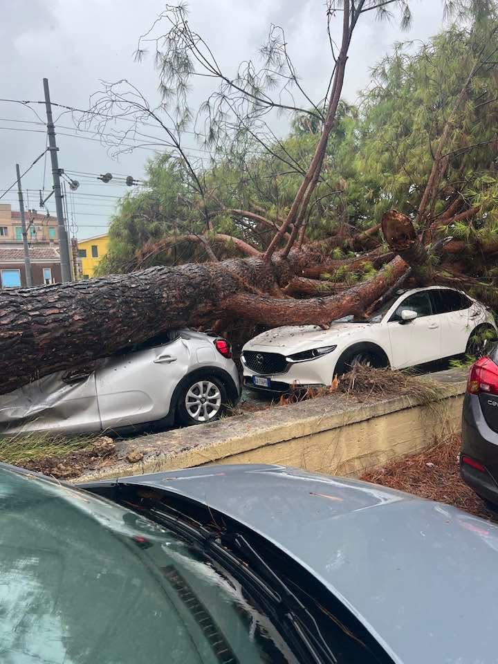 Fortunatamente al momento del crollo i veicoli erano vuoti e non si sono registrati feriti. Le immagini diffuse dai presenti mostrano con chiarezza l’impatto devastante, con le carrozzerie dei mezzi letteralmente accartocciate sotto il peso del tronco.