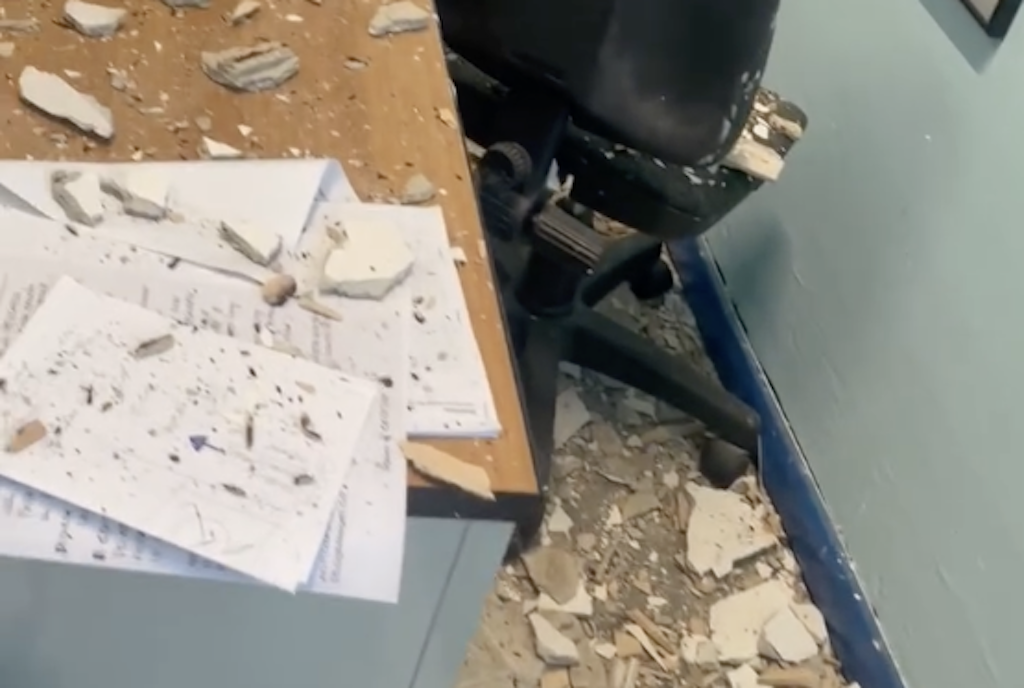 PESCARA – Una brutta sorpresa ha accolto questa mattina intorno alle 8 i consiglieri del Partito Democratico di Pescara entrati nella stanza al secondo piano del Palazzo di Città, assegnata al proprio gruppo consiliare. Il solaio della stanza ha improvvisamente ceduto nel fine settimana, causando la caduta di pesanti calcinacci su sedie, scrivanie e attrezzature di lavoro.