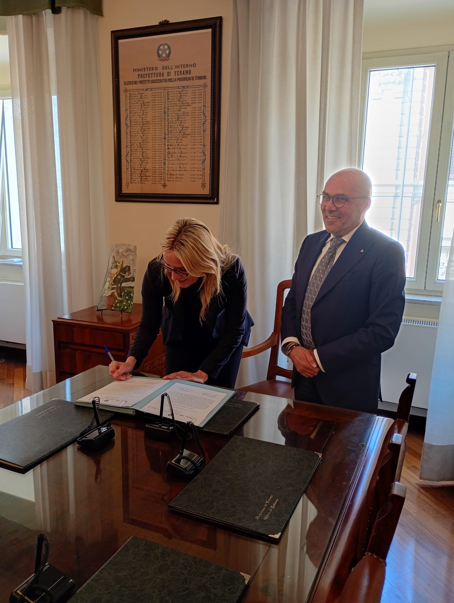A firmare l’atto di adesione il Prefetto di Teramo, Fabrizio Stelo, e la Presidente della Camera di Commercio, Antonella Ballone. L’accordo, originariamente sottoscritto il 2 dicembre 2024 da Prefettura, Forze dell’Ordine, enti pubblici e associazioni attive nel settore, si arricchisce così di un nuovo attore istituzionale impegnato nella promozione di azioni di prevenzione e sensibilizzazione.
