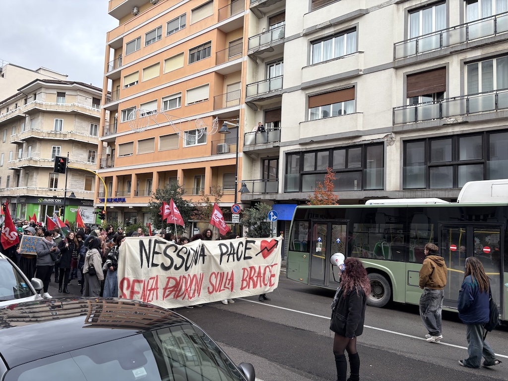 PESCARA – Per lo più giovani studenti in testa al piccolo corteo che stamattina ha radunato circa sessanta persone, scortate dalle forze dell’ordine, nella manifestazione che accompagnava lo sciopero generale indetto dai sindacati di base Cobas, Usb, Sgb e Cup, su scala nazionale. Slogan a sostegno della Palestina, contro Israele e il governo italiano, ripetuti al megafono hanno attraversato il centro di Pescara, partendo da piazza Unione fino a piazza Salotto, con i simboli dei sindacati coinvolti, la bandiera palestinese e quella della pace.