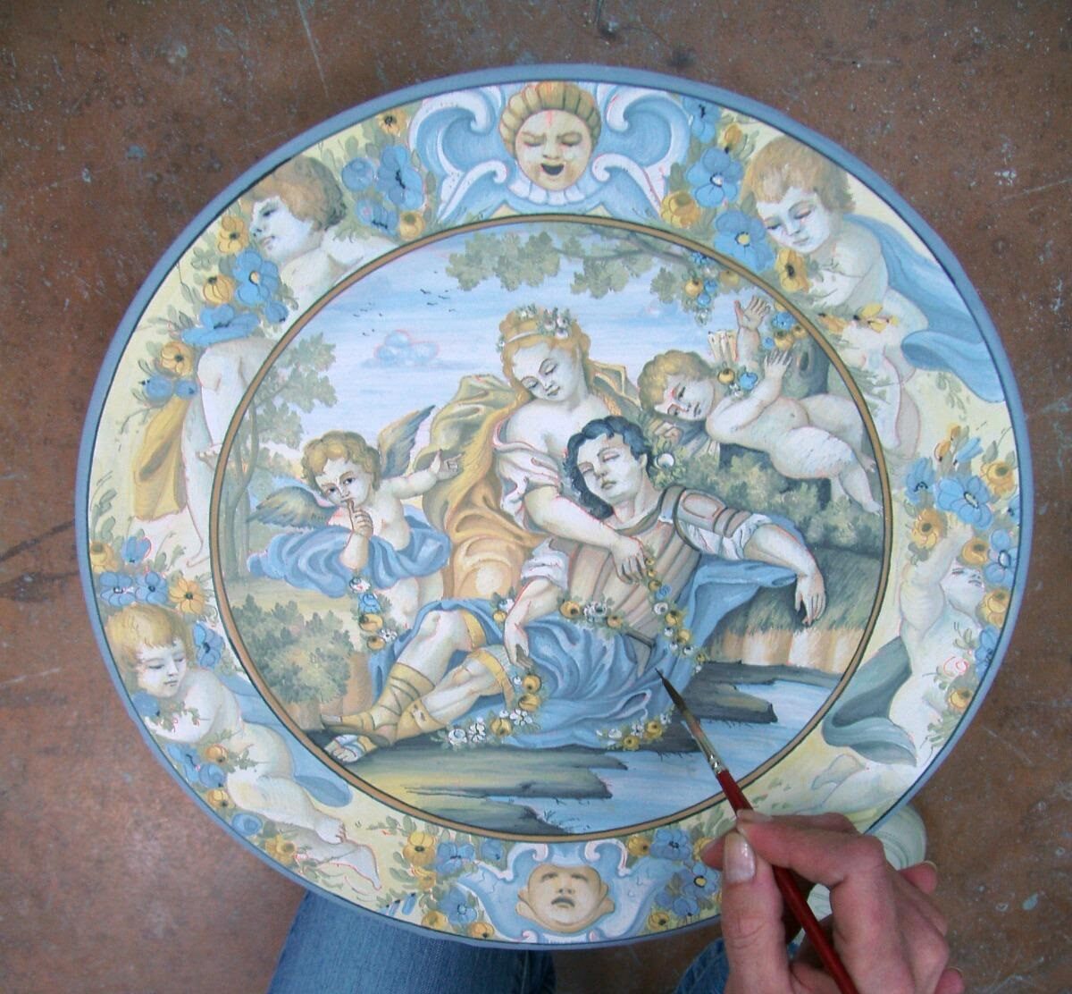 I piatti – circa 25 centimetri di diametro – recano la Venere di Botticelli, ormai logo ufficiale del Ministero, armonizzata con il simbolo di Castelli. Un intreccio di identità che Simonetti ha voluto trasformare in un dialogo tra la storia dell’arte italiana e la memoria del suo territorio.