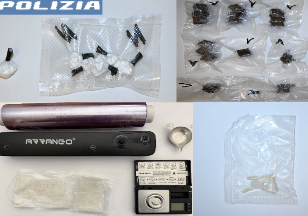 Nel corso della perquisizione domiciliare, gli agenti della Squadra Mobile hanno rinvenuto anche uno strumento e vario materiale per il confezionamento sottovuoto delle dosi, oltre a un miscelatore, elementi ritenuti compatibili con un’attività strutturata di preparazione e confezionamento dello stupefacente. L’uomo è ai domiciliari.