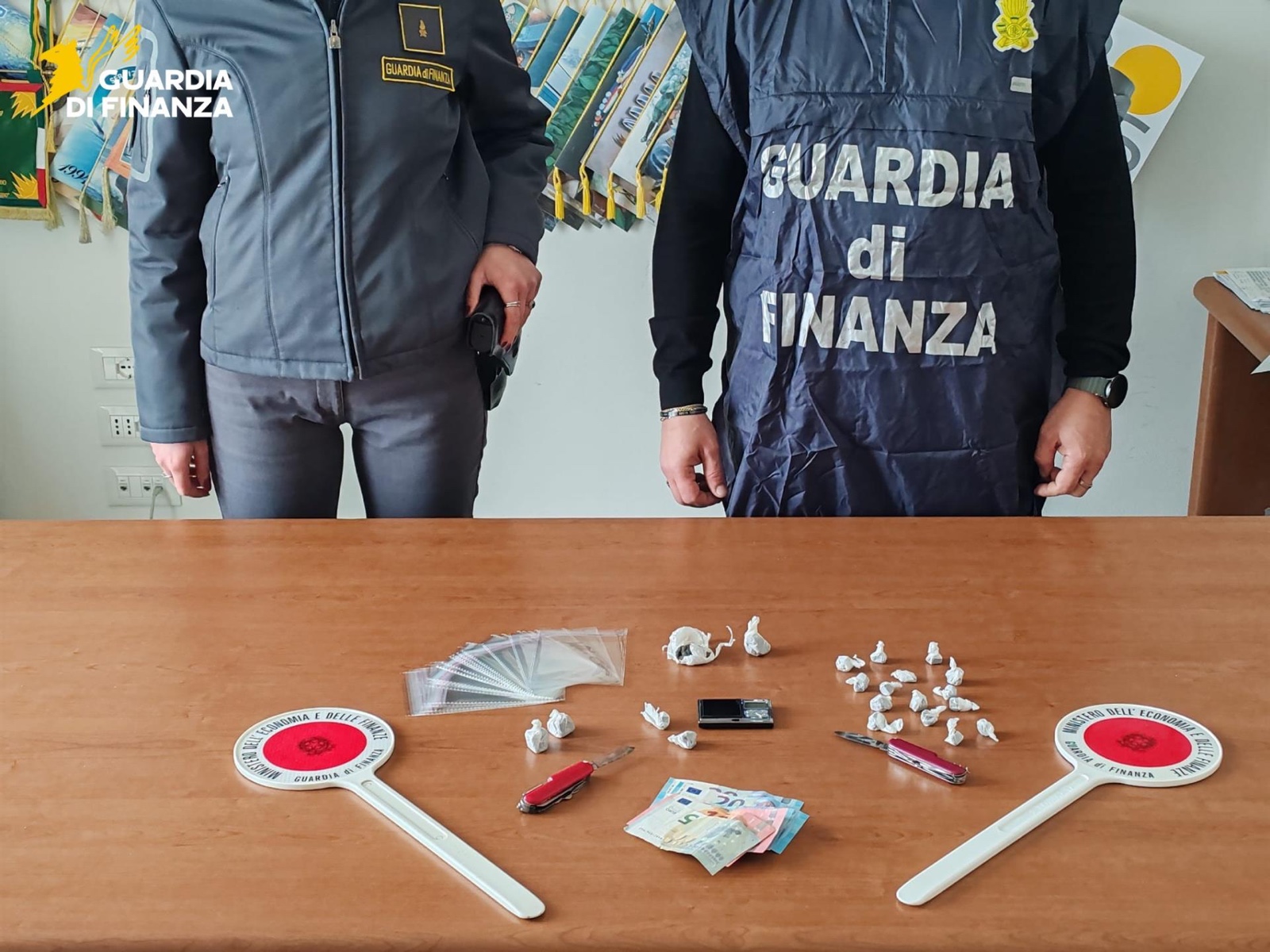 Durante l’intervento le Fiamme Gialle hanno recuperato circa 20 dosi già confezionate per un peso complessivo di circa 41 grammi di hashish e, successivamente, nel corso della perquisizione domiciliare, ulteriori 10 grammi insieme al materiale utilizzato per il confezionamento. Complessivamente sono stati sequestrati oltre 57 grammi di sostanza destinata allo spaccio.