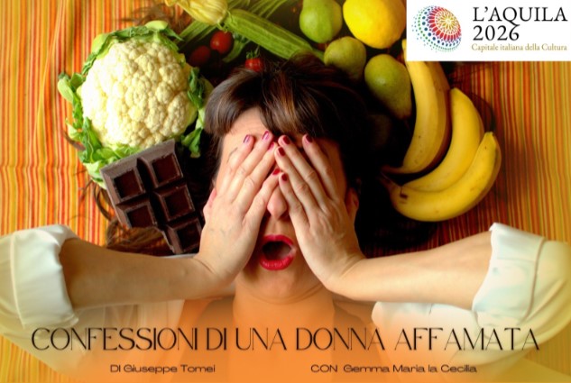 L’AQUILA – Un viaggio intimo, ironico e profondamente umano dentro le nostre fragilità quotidiane. È ciò che promette “Confessioni di una donna affamata”, il monologo teatrale scritto da Giuseppe Tomei e interpretato da Gemma Maria La Cecilia, in scena sabato 7 marzo alle ore 21:00 al Teatro Spazio Rimediato, nell’ambito della rassegna “Tutto il superfluo necessario” per L’Aquila Capitale della Cultura 2026.