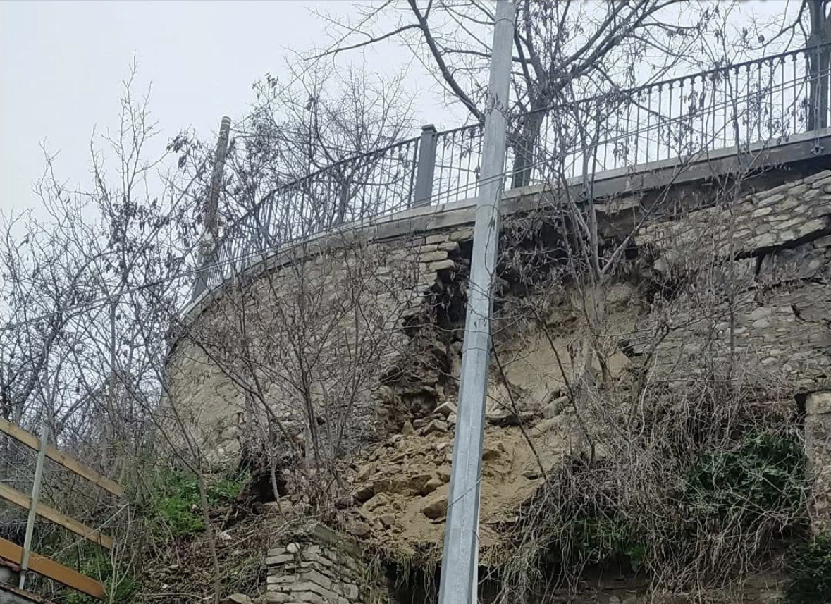 Le piogge intense provocano frane e danni alle mura della piazza, con detriti sul pendio e un’abitazione precauzionalmente chiusa. “Siamo intervenuti tempestivamente per la sicurezza di tutti”, spiega il sindaco Giuseppe Del Papa