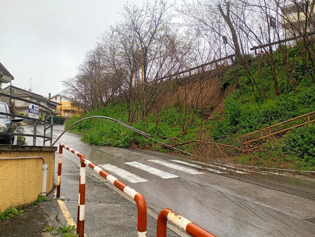 CHIETI – La giornata di piogge incessanti provoca gravi danni in città. Questa mattina in una traversa di via Fieramosca, in zona Sant’Anna, parte della carreggiata stradale è sprofondata di diversi centimetri. Lungo la discesa di via Madonna delle Grazie, invece, cede la scarpata, travolgendo anche un palo della pubblica illuminazione. E diverse criticità si registrano in tutta la città.