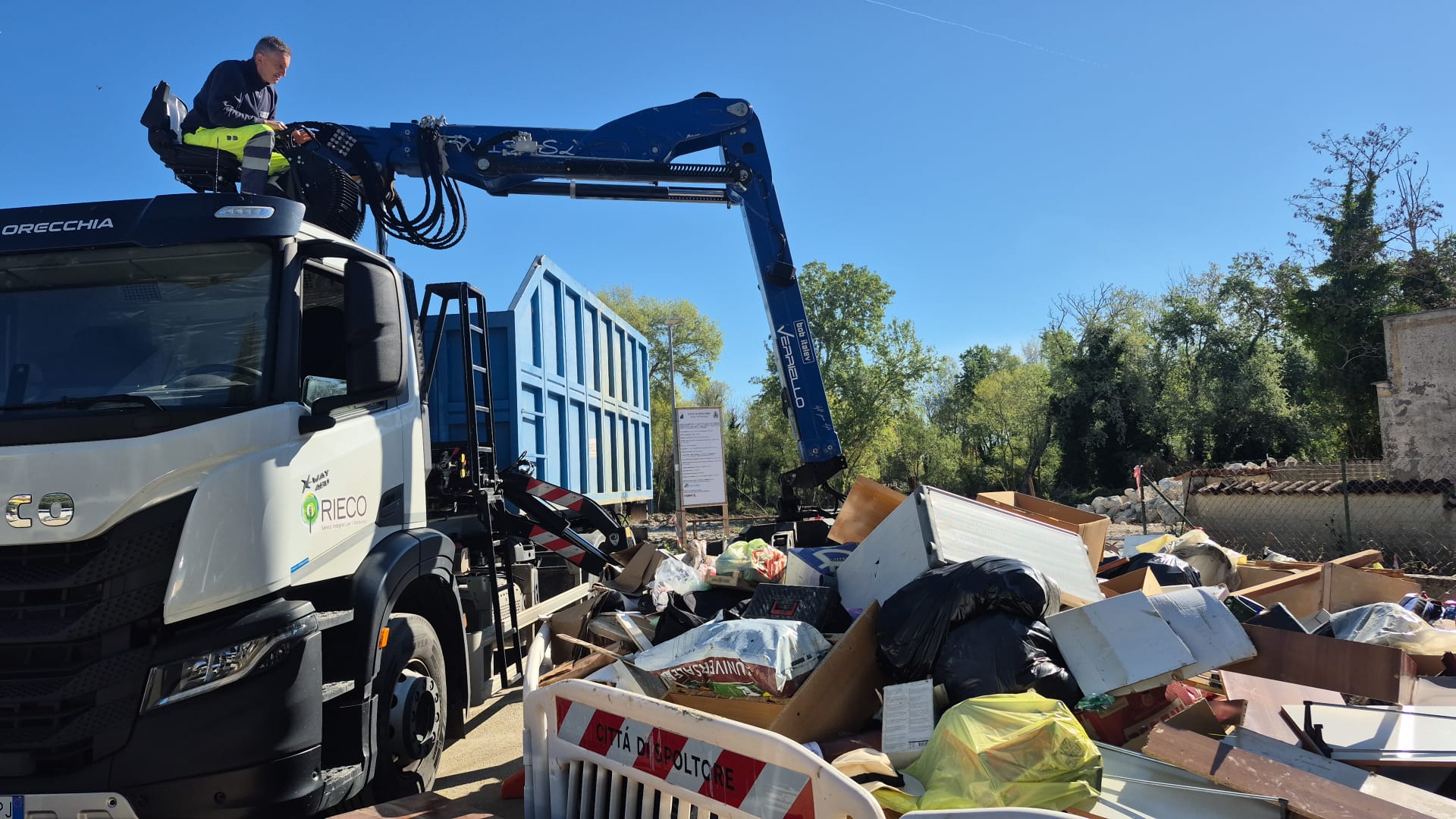 A partire dalle prime ore della giornata, le squadre di Rieco S.p.A. sono intervenute con mezzi dedicati, tra cui il “ragno” attualmente impegnato nella raccolta del materiale, per procedere alla rimozione dei rifiuti e al ripristino del decoro urbano.
