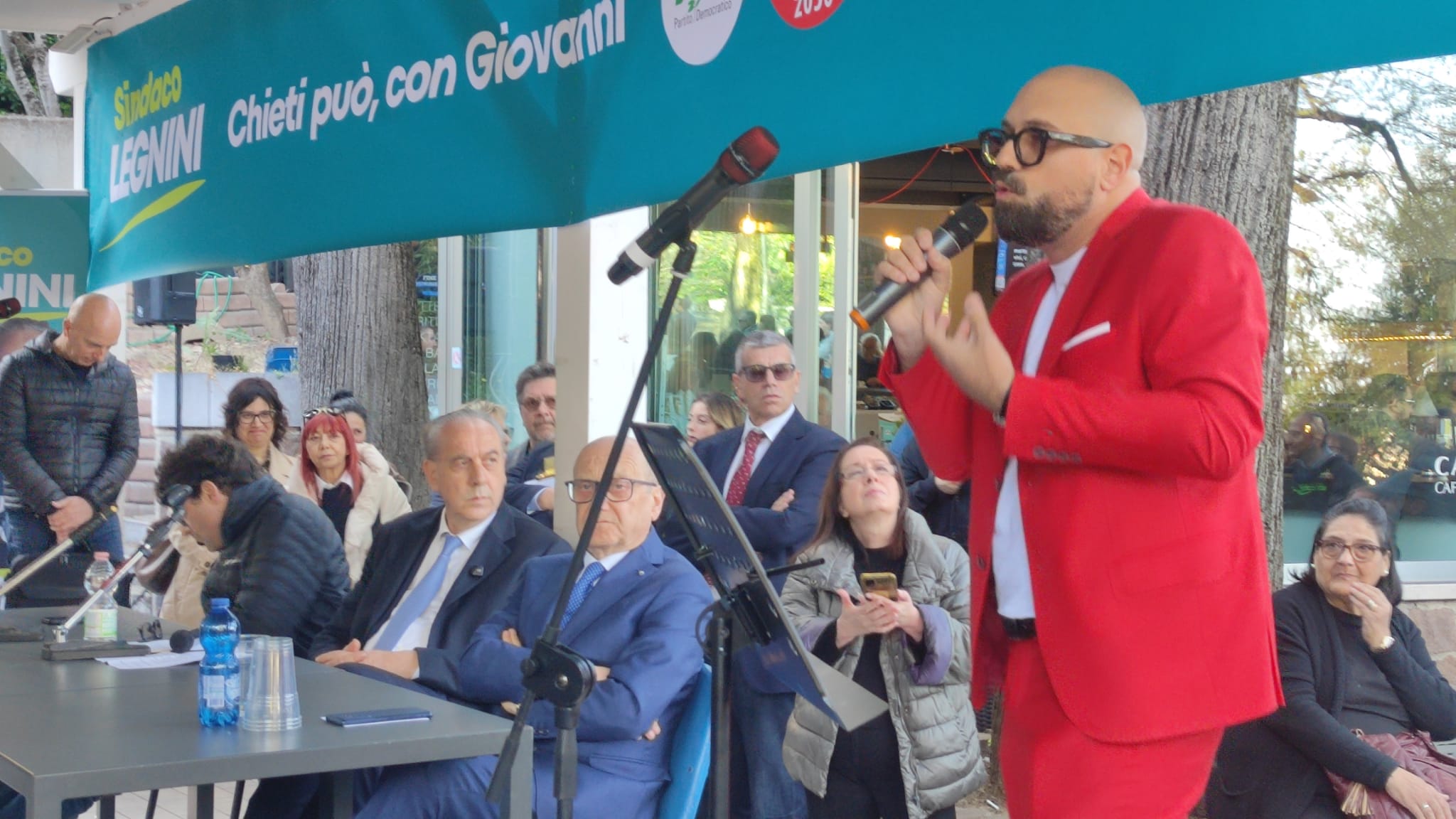 Poi è partita la presentazione delle liste. Per il Partito democratico, in un completo rosso sgargiante, è arrivato il segretario cittadino Gianmarco Pescara che ha dato stoccate sia al candidato di FdI, “più che civico, martire”, che a quello della Lega: “Lui almeno ci ha messo la faccia, al contrario degli altri. Ma almeno si scusasse per i debiti lasciati al Comune”.