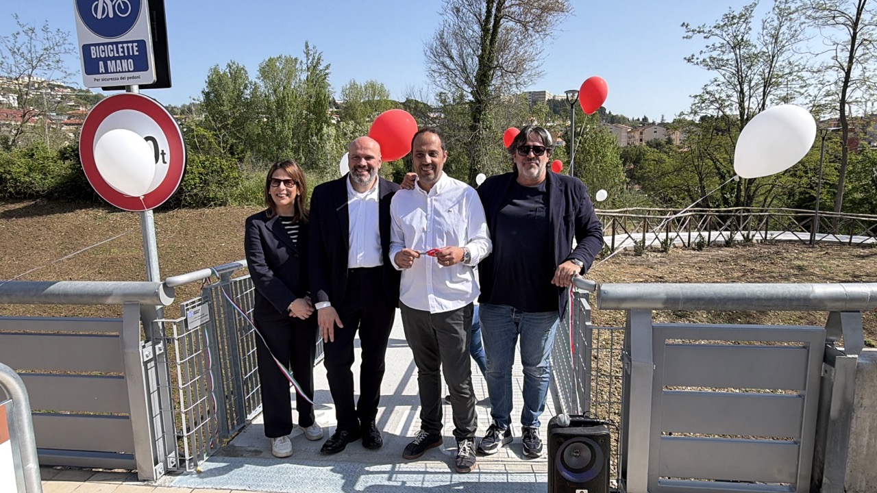 TERAMO – Da questa mattina il collegamento tra il centro storico e il parco fluviale è più diretto. A Teramo è stata infatti inaugurata la nuova passerella ciclopedonale realizzata nell’area del parcheggio San Francesco, pensata per rendere più semplice il passaggio tra due zone molto frequentate della città e per incentivare una mobilità più agile e sostenibile.