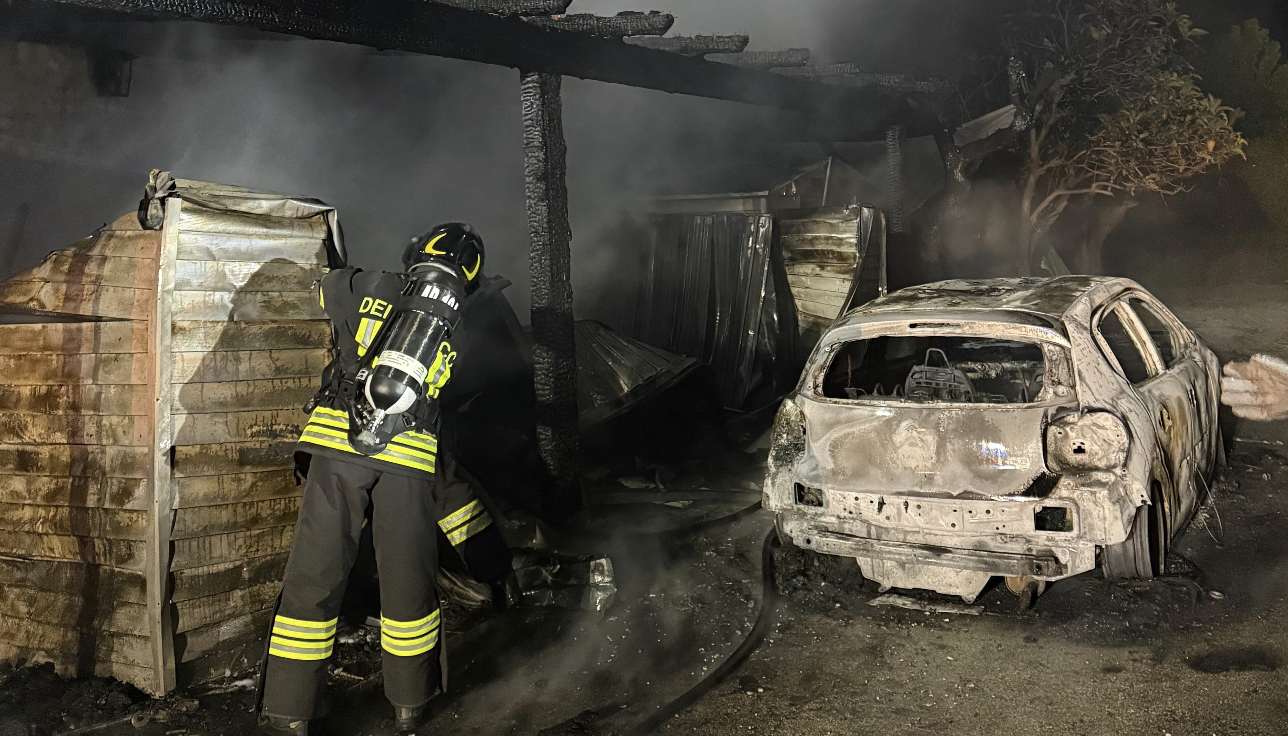 ALBA ADRIATICA – Paura nella notte ad Alba Adriatica, dove poco dopo l’una un incendio ha interessato un edificio di civile abitazione in via IV Ottobre. Le fiamme hanno coinvolto quattro auto parcheggiate – una Citroën C3, una Volkswagen Up, una Mercedes GLC e una Dacia Duster – e una tettoia esterna di circa 50 metri quadrati, propagandosi poi al piano terra dello stabile, adibito a taverna e rimessa.