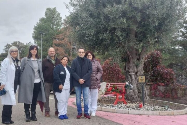 La Asl di Teramo inaugura una panchina rossa e un ulivo contro la violenza sulle donne