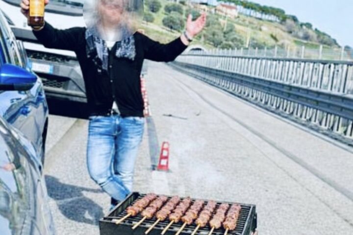 CHIETI - Una foto sui social che diventa virale: alcuni ragazzi bloccati tra cantieri e incidenti accendono la fornacella e cuociono gli arrosticini