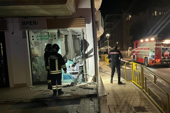 PINETO - Un’esplosione nella notte ha distrutto e fatto saltare in aria un bancomat Bper a Pineto, in via Garibaldi. Vetrate in frantumi e danni agli uffici della banca, intervento di vigili
