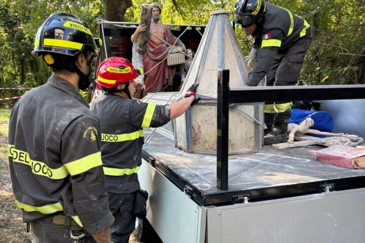 Tossicia, i vigili del fuoco recuperano le opere d’arte dalla chiesa di Sant’Andrea a Flamignano